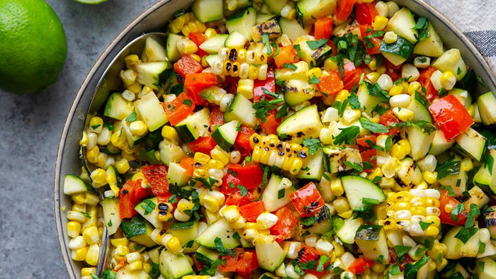 This fresh recipe combines charred corn, zucchini, and cherry tomatoes with our Basil Infused Olive Oil and Watermelon Rosé Balsamic.