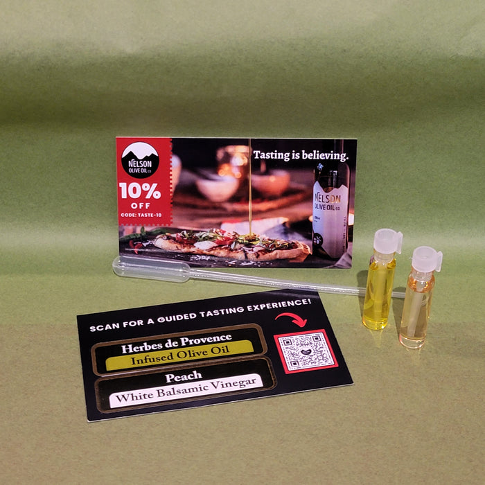 Our Oil & Balsamic Sample Packs typically include a mix of: